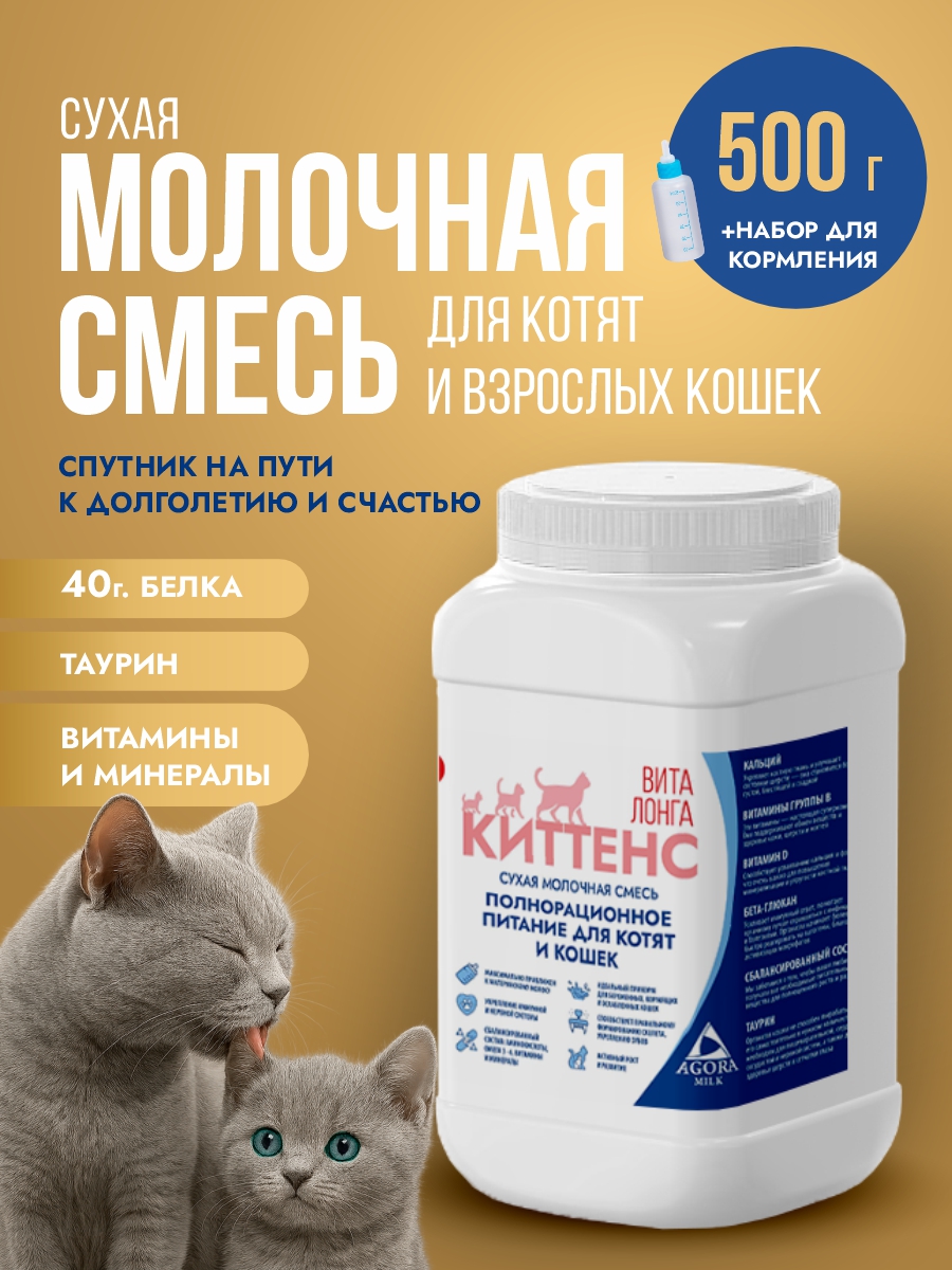 Сухое молоко для котят "AGORAmilk" ПРО Киттенс успешно применяется как основной корм для новорожденных котят, лишившихся материнского молока, так и в качестве дополнительного питания во время отлучения от матери. Этот продукт помогает котятам крепнуть, становиться активными и жизнерадостными. Данное сухое молоко отлично подойдет больным и ослабленным после болезни кошкам, в качестве источника витамин.